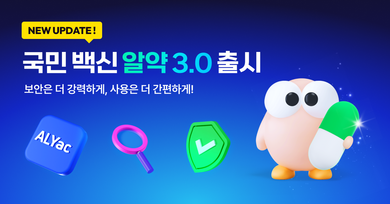 국내 1위 PC 백신 ‘알약’이 더 강력한 보안 성능과 간편해진 사용성으로 새롭게 돌아왔습니다! 랜섬웨어 대응력은 물론 실시간 탐지, 자가보호 등 핵심 기능이 대폭 강화되었고, 직관적인 UI와 가벼운 구동 성능으로 누구나 쉽게 전문가 수준의 보안을 누릴 수 있습니다. 일상과 업무, 교육 환경까지 폭넓게 대응하는 ‘알약 3.0’을 지금 경험해 보세요. |