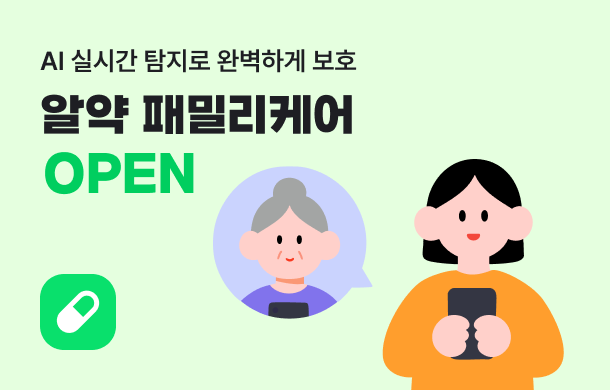 AI 기반 모바일 보안 서비스 ‘알약 패밀리케어’를 소개합니다! 가족을 하나로 묶어 실시간 위협을 탐지하고 통합 관리할 수 있으며, 스미싱이나 악성 앱이 발생하면 대표 사용자에게 즉시 알려줍니다. 지금, 서비스 특징과 기능을 확인해보세요.